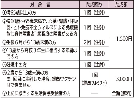 従来の注射に加え、一部対象者へ新たに、鼻に噴霧する「経鼻インフルエンザワクチン(フルミスト)」の助成を行います。