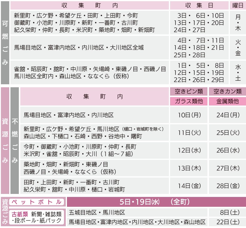 ※収集に関するお問い合わせは、町住民生活課(【電話】852・5112)まで