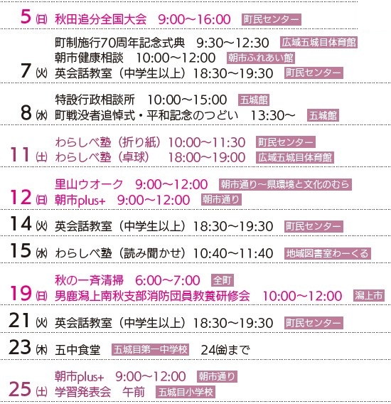 くらし 10月行事予定 37/42 前の記事 次の記事 発行日 : 2025年10月01日 自治体名 : 秋田県五城目町 広報紙名 : 広報ごじょうめ 令和7年10月号No.1094 Tweet シェアする 10月は粗大ごみを収集します 町職員の給与の現状を公開しています