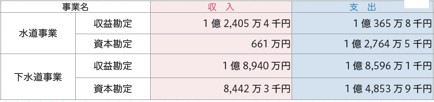 保険料を徴収している国民健康保険事業などは、一般会計と区別し、個別に特別会計として会計処理を行っています。また、水道事業・下水道事業は独立した公営企業会計として、水道の利用料金などの収益を基に運営をしています。