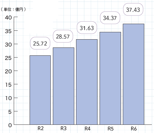 令和6年度は1億260万円を取り崩しましたが、4億865万円を積み立て、令和6年度末の基金現在高は37億4,363万5千円となりました。