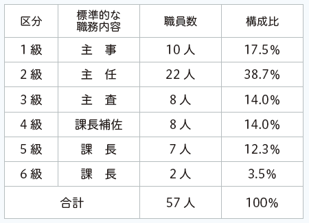 ※給与条例に基づく給料表の級区分による職員数です。標準的な職務内容は、それぞれの級に該当する代表的な職務です。