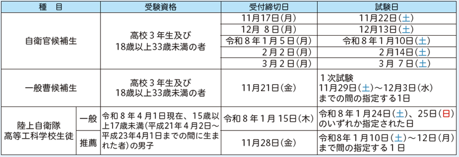 防衛省では令和7年度採用試験を下記のとおり行います。