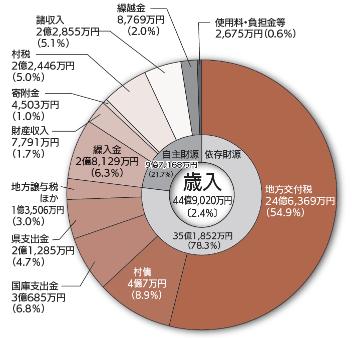 一般会計 歳入総額 44億9,020万円(2.4%増)