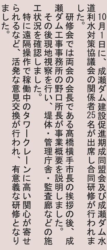 その他 成瀬ダム情報 21/25 前の記事 次の記事 発行日 : 2025年10月20日 自治体名 : 秋田県東成瀬村 広報紙名 : 広報ひがしなるせ 令和7年10月号 Tweet シェアする 東成瀬村 地域おこし協力隊 ふるさとへの便り