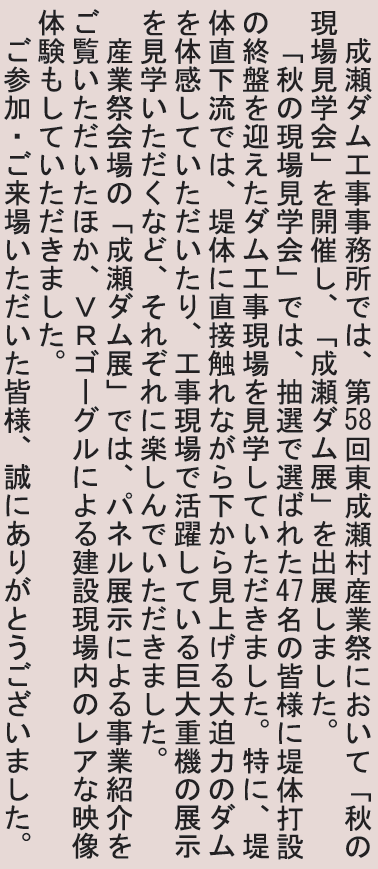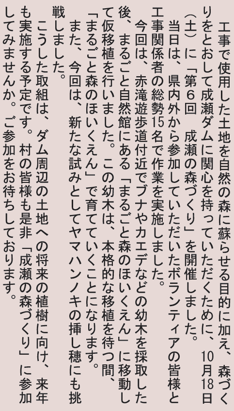 くらし 成瀬ダム情報 19/23 前の記事 次の記事 発行日 : 2025年11月20日 自治体名 : 秋田県東成瀬村 広報紙名 : 広報ひがしなるせ 令和7年11月号 Tweet シェアする 東成瀬地域おこし協力隊 ふるさとへの便り