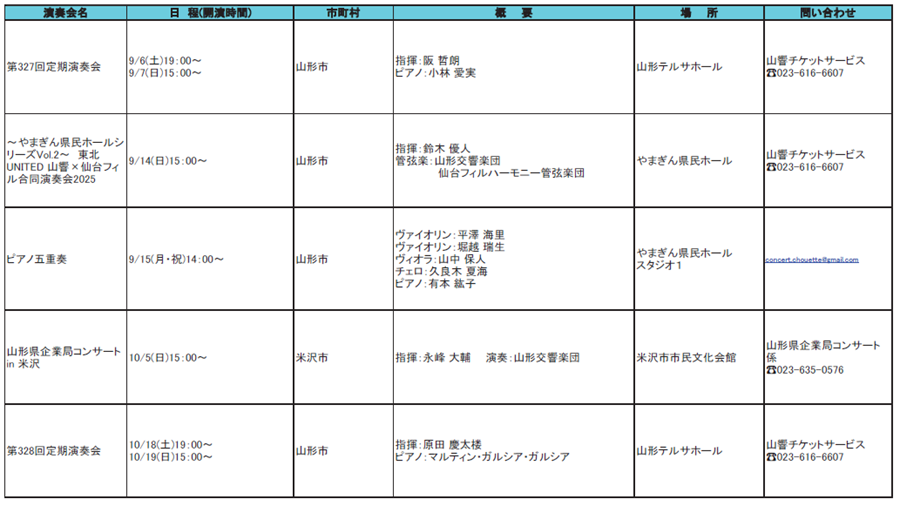 イベント 山形交響楽団演奏会(県内版) 39/39 前の記事 発行日 : 2025年09月01日 自治体名 : 山形県 広報紙名 : 山形県 観光イベントカレンダー (2025年9月・2025年10月) Tweet シェアする プロスポーツ試合情報(県内版)