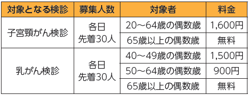 ▽土曜日に子宮頸(けい)がん・乳がん検診が受診できます