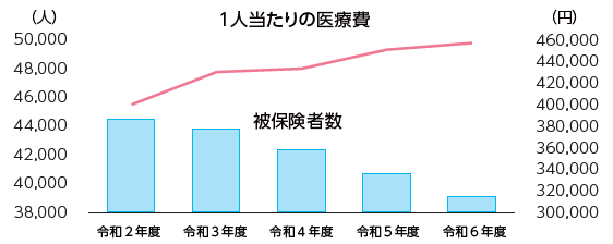 被保険者は年々減少していますが、1人当たりの医療費は増加傾向にあります。