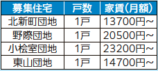 申込資格:次の全てに該当する方(1)住宅に困窮している、(2)単身入居ではない(60歳以上は単身可)、(3)収入基準に合う、(4)税金の未納がない、(5)暴力団員ではない。
