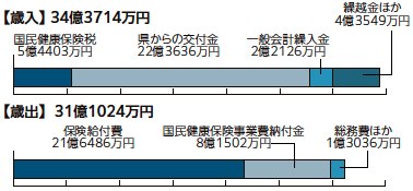 令和6年度末の加入世帯は4049世帯で、被保険者数は6176人でした。医療費(自己負担分を除く)を保険給付費として国民健康保険事業特別会計から支出しました。