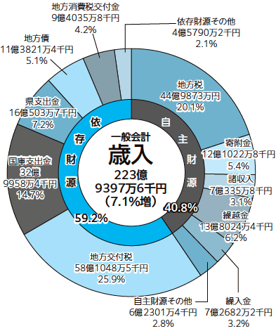歳入決算額:223億9397万6千円(対前年度比約14億9163万円の増)