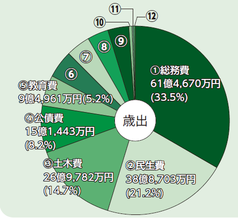 総務費 定住促進や地方創生などの政策推進、税の課税や徴収、戸籍・選挙事務などに使ったお金