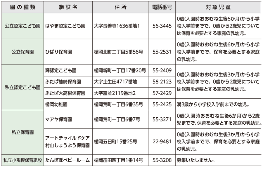 市内の教育・保育施設の情報は、市ホームページをご覧ください。