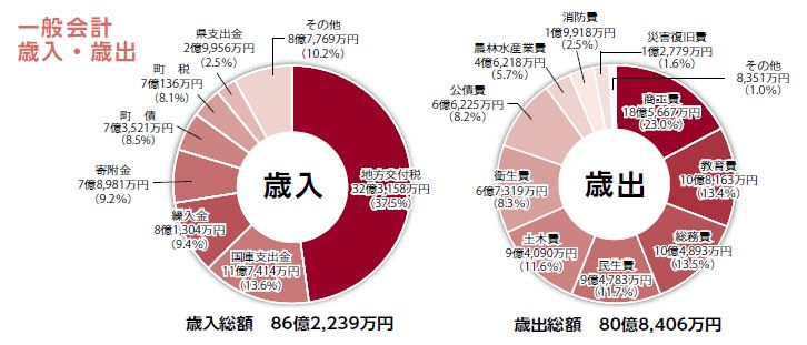 歳入総額は86億2,239万円で、前年度比13.2%、10億227万円の増加となりました。