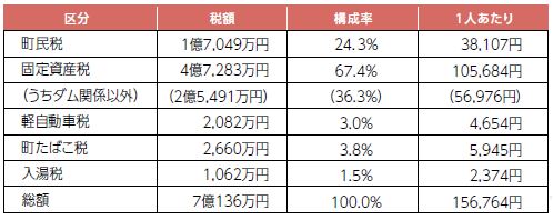 その中で主なものをご紹介します。まず、町税は、7億136万円の決算額となり、前年度比3.0%、2,161万円の減少となりました。