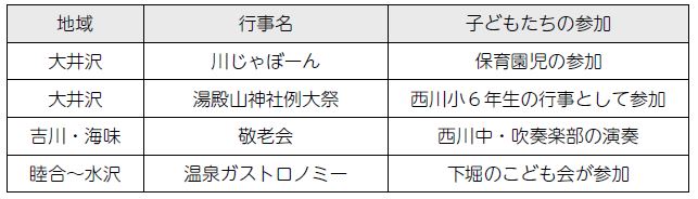地域の公民館や神社、お不動様、設楽酒造、山竹商店、玉貴さんなど町内事業者の皆様にも温かいご協力をいただき、感謝申し上げます。岩根沢区の皆様、下堀子供会の皆様などたくさんの町民の方々にも参加いただきました。2回目以上の参加者は6割を超え、「毎回参加している。西川町の人々の笑顔に会えるから」とのお言葉もいただきました。町民の笑顔こそが最高のおもてなしです。
