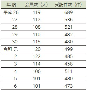 シルバー人材センターは市区町村単位で置かれ、当町においては平成7年に発足。今年7月25日現在で109人(男性:72人・女性:37人)が加入しています。〔図2〕に記載のとおり、昨年度まで会員数はやや減少していたものの、受託件数は新型コロナの流行が収まった令和4年度に再び増加しています。
