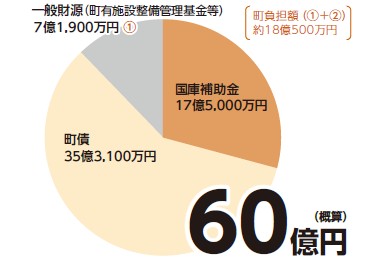 義務教育学校建設:町債額35億3,100万円-交付税算入額約24億4,500万円=町負担額約10億8,600万円(2)