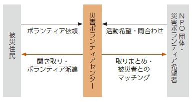 同センターでは発災時、災害ボランティア希望者を取りまとめ、現地にて被災者から現状や必要な支援を聞き取ってマッチングにつなげる役割を担います。