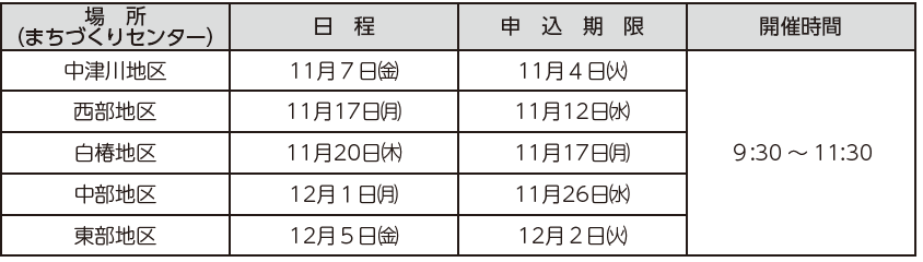 申込方法:開催日3日前まで、町健康福祉課子ども家庭健康室へ電話でお申し込みください