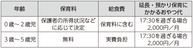 ※延長・預かり保育にかかるおやつ代、給食費については、保護者の所得状況によって免除になる場合があります