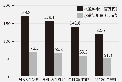 人口減少により低減する水道使用量を予測し、将来の水道料金を試算する。