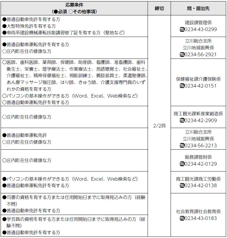 ※募集要項は、役場総合案内、立川総合支所総合支所係、各提出先にあります。また町のHPからダウンロードすることもできます。