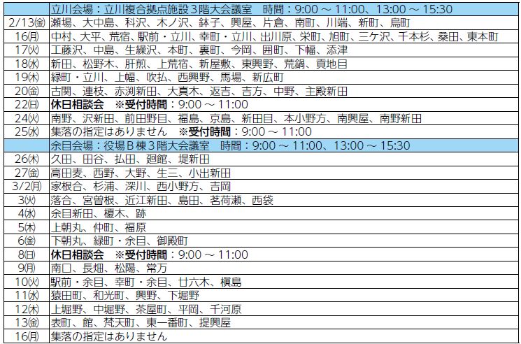 受付時間内にご来場ください。指定日に来場できない場合は、表中のご都合のよい日にお越しください。