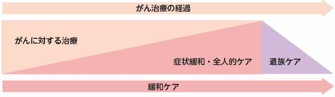緩和ケアは、がんにかかった患者さんの体やこころの痛み、苦しみ、つらさを和らげ、自分らしく少しでも楽に生活できるよう支えていく医療です。がんと診断された時から緩和ケアを受けることができます。緩和ケアを受けたいときは、担当医や看護師へ相談してみましょう。