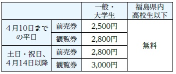 ※県内の高校生以下、障がい者も前売券(無料)または観覧券(無料)が必要です。