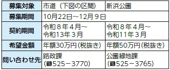 くらし 道路・公園のネーミングライツ・ パートナー募集! 24/36 前の記事 次の記事 発行日 : 2025年11月01日 自治体名 : 福島県福島市 広報紙名 : ふくしま市政だより 令和7年11月号 市の施設に愛称をつける権利を取得できるネーミングライツ・パートナーを募集します。 ・愛称には、企業名などをつけることができ、宣伝効果が高まります。 ・納入されたネーミングライツ料は、市政運営に活用します。 ※詳細は本誌P.16をご覧ください。 Tweet シェアする お詫びと訂正 [お知らせ]暮らし