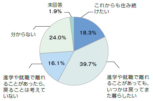 全体で6割弱の小・中学生が、Uターンを含め、本市で暮らし続けたいと回答しました