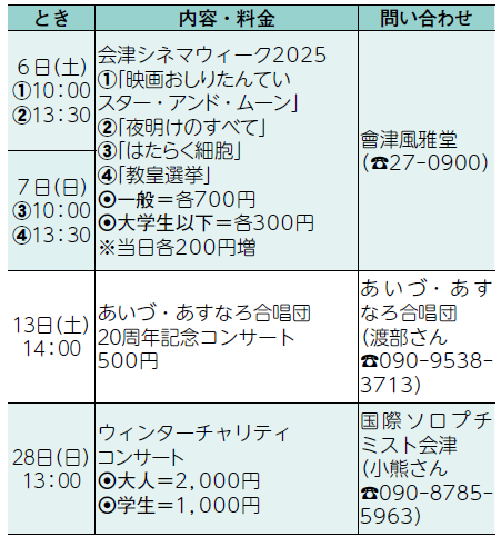 ■會津風雅堂の催し