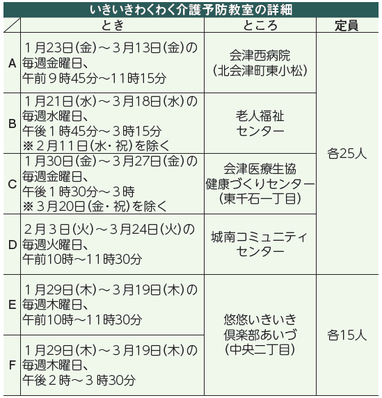 申込み・問合せ:北会津地域包括支援センター