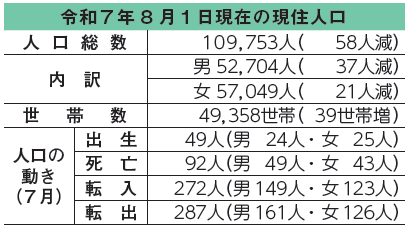 その他 人口と世帯数 2/39 前の記事 次の記事 発行日 : 2025年10月01日 自治体名 : 福島県会津若松市 広報紙名 : あいづわかまつ市政だより 令和7年10月号 ※福島県の推計人口より掲載。増減数は前月比 令和7年8月1日現在の外国人住民数(住基人口):1,169人(男526人・女643人) 問合せ:企画調整課 【電話】39-1215 Tweet シェアする 防災ノススメ 今月の納期