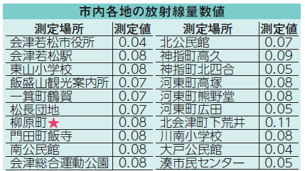 くらし 9月16日の放射線量をお知らせします 36/39 前の記事 次の記事 発行日 : 2025年10月01日 自治体名 : 福島県会津若松市 広報紙名 : あいづわかまつ市政だより 令和7年10月号 ※単位はマイクロシーベルト/時。 ★は測定器調整中のため、直近の測定値を掲載 問合せ:環境共生課 【電話】23-4700 Tweet シェアする あれこれカレンダー10月 今月の病院情報10月