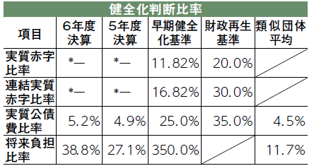 令和6年度決算では、財政健全化法で規定される全ての比率が法律で定める基準内に収まっているため、市の財政指標はおおむね健全です。