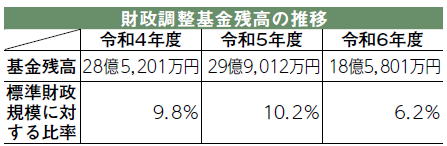 財政調整基金とは、災害などの不測の事態などに対応するため、自治体が積み立てる「貯金」のようなものです。その額は、標準財政規模の10%程度が適正といわれています。市では毎年、決算による剰余金の積み立てに努めています。