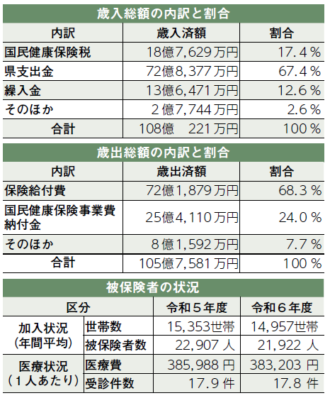 令和6年度の国民健康保険特別会計は、世帯数や被保険者数の減少などにより、保険税や保険給付の費用が減少し、一人あたりの医療費も減少しました。