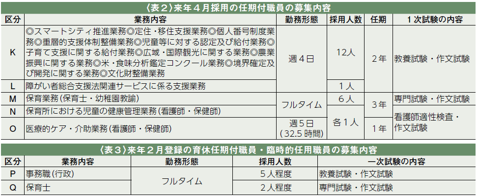 ▽来年4月採用の任期付職員、来年2月登録の育休任期付職員・臨時的任用職員の募集