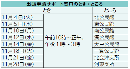 ▽公民館・支所の臨時窓口 ※完全予約制