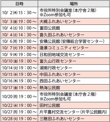 ▽住民説明会「公共施設等総合管理計画及び個別施設計画の見直し」・「使用料・手数料の見直し」