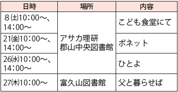申込み:11/9(日)までに、窓口、電話、【メール】[email protected]のいずれかで。