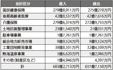 特別会計…国民健康保険などの市で特定の事業を行う場合に、一般会計と区別して行う会計
