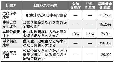 いずれの指標も「早期健全化基準」を下回ることが良好とされており、令和6年度は全ての指標で基準を下回りました。
