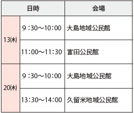 日時:12月4日(木)・11日(木)・18日(木)午前9時30分〜11時(11日のみ午前10時〜正午)