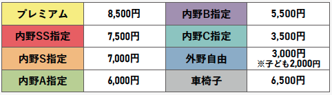 席種:ヤクルトスワローズ…1塁側 ジャイアンツ…3塁側