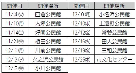 申込方法:任意の様式に教室名・住所(郵便番号)・参加する方の氏名・お子さんの年齢・連絡先(電話番号・メールアドレス)を記入し〒970‒8686 同課へ(メール・FAX・申込フォーム可)