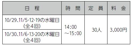 日時:11/8(土)・22(土)・29(土)各回10:00~12:00
